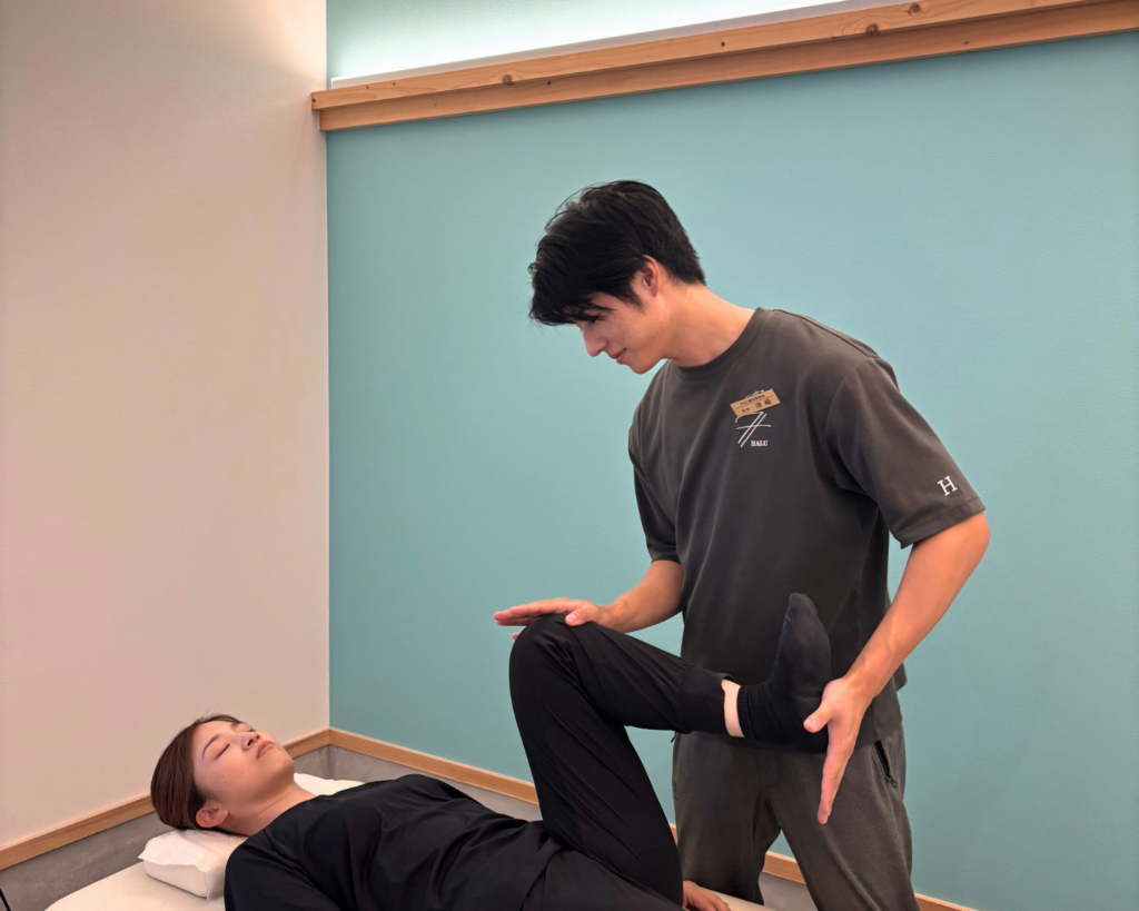 HALUの整体は「ほぐすだけ」でなく、関節面・関節包・筋膜系までアプローチして、膝にかかるストレスそのものを軽減させます。