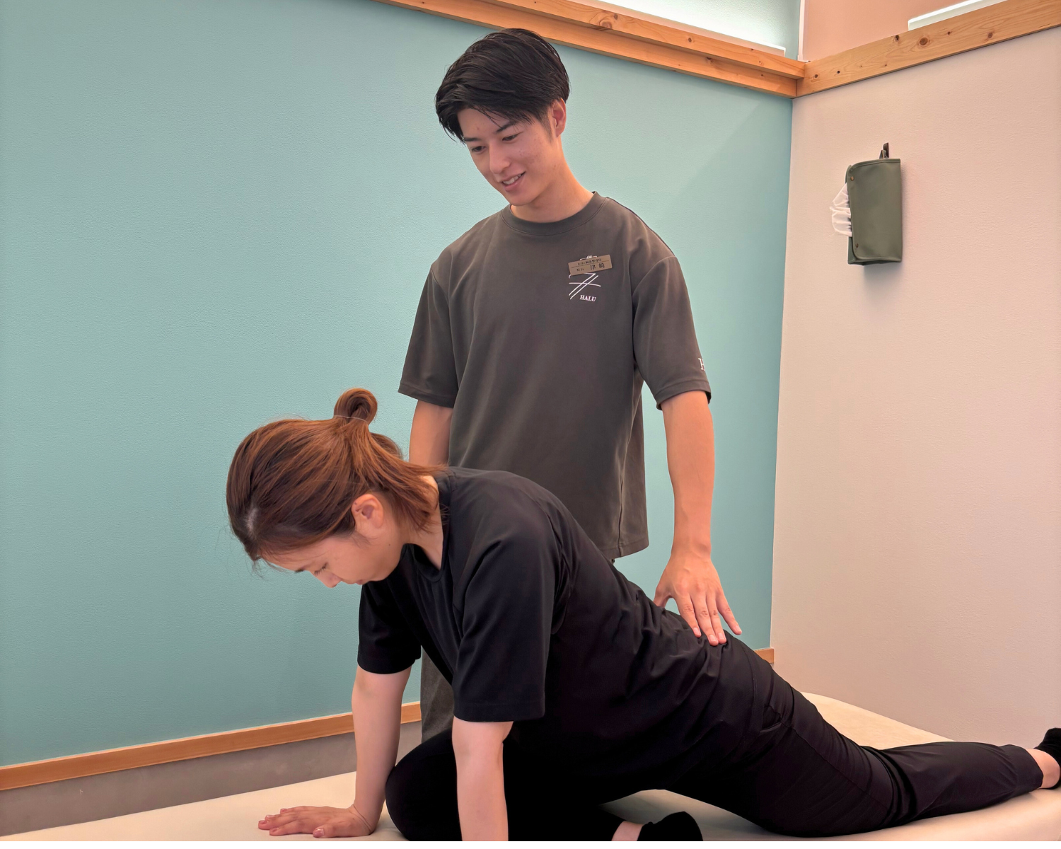 まずは痛みや可動域に対して、手技で改善を図ります。