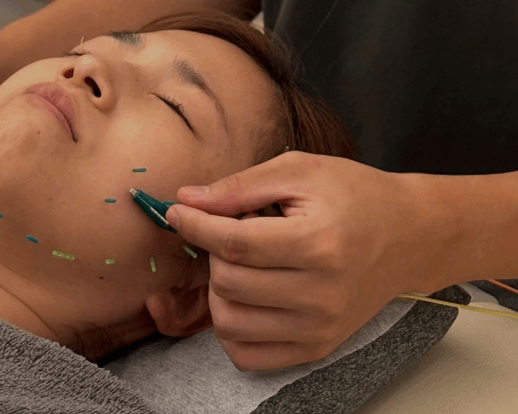 A. 美容鍼は、顔の筋肉やツボを刺激することで血流改善・むくみ解消・リフトアップ効果が期待できます。肌のターンオーバーを整えることで、しみ・しわ・たるみにもアプローチできます。また、表情筋へのアプローチで美容鍼の最大のメリットである老化を防ぐこともできます。